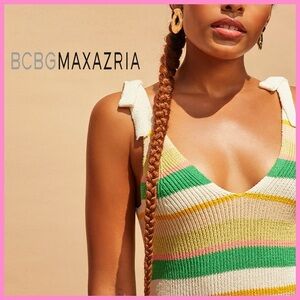 BCBGMaxAzria Knitted V Neck Striped Tank Top