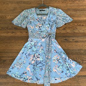 BCBGMaxAzria Kylie Floral Print-Blocked Wrap Dress Size XS