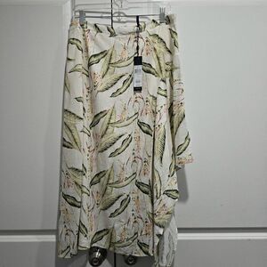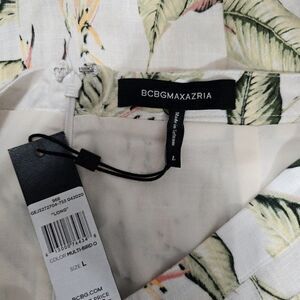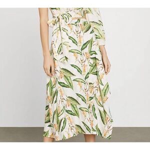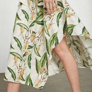 BCBGMaxAzria - L - Tropical Bird Of Paradise Asymmetric Skirt Green & Cream $198