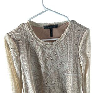BCBGMaxAzria Lace Long Sleeve Maternity Dress Women's Size XS in Beige Ivory