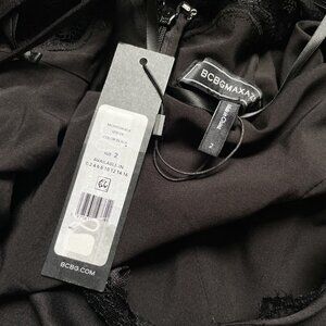 BCBGMaxAzria Lace Trim Low Back Evening Gown Black Size 2 NEW NWT