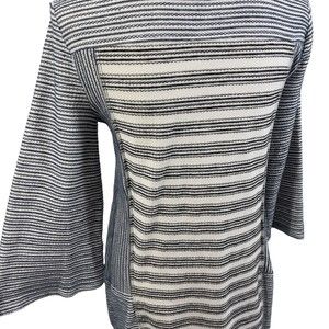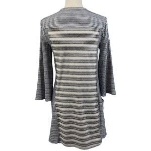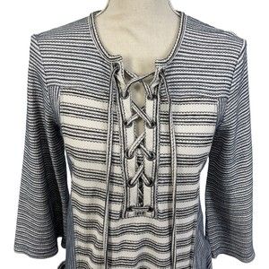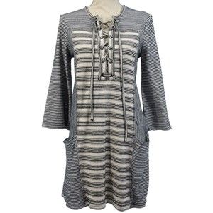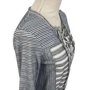 BCBGMaxAzria Lani Lace-Up Front Embroidered Striped Knit Casual Tunic Shirt Dress Womens Small. 100% Cotton. Oversized pockets. 3/4 Flared Sleeves. Original Retail $178