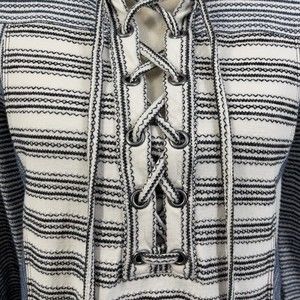 BCBGMaxAzria Lani Lace Up Front Embroidered Striped Knit Tunic Dress Womens S