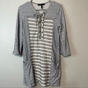 BCBGMaxAzria Lani Tie Front Striped Knit Dress 100% Cotton