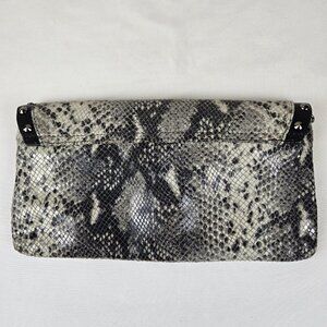 BCBGMaxAzria Leather Snakeskin Print Clutch Silver Stud Embellishment Black Trim