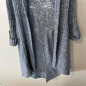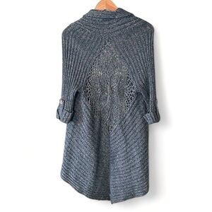 BCBGMaxAzria Long Crochet Back Cardigan Ash Blue Boho