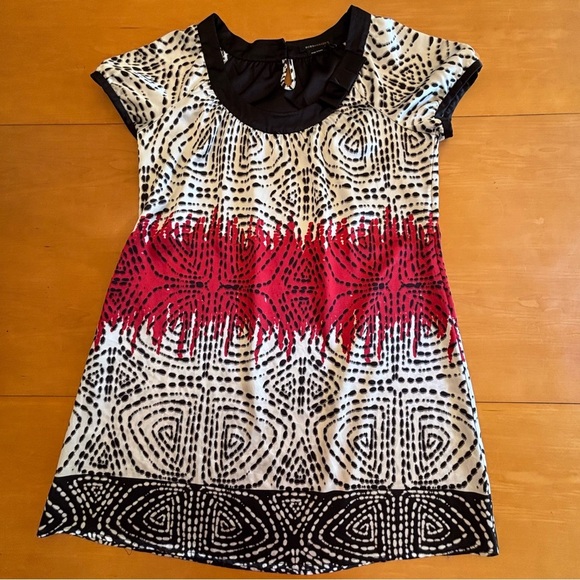 BCBGMaxAzria M black red white, mini relaxed fit shift short sleeve dress