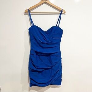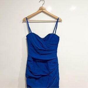 Strapless ruched cocktail dress in sapphire blue with a sweetheart neckline