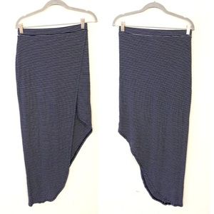 BCBGMaxAzria Mercer Ribbed Blue Stripe Maxi Wrap Skirt Size M