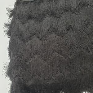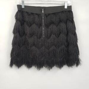 BCBGMaxAzria Modie Tiered Fringe Mini Skirt in Black, Size L.