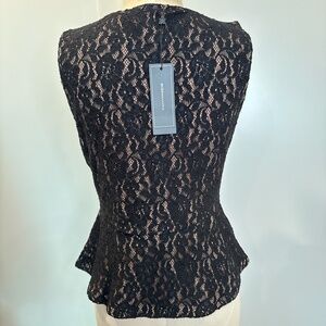 BCBGMaxAzria NWT Black Lace Peplum Top with Nude Underlay- Size Medium