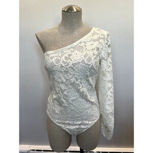 BCBGMaxAzria NWT One Shoulder Lace Bodysuit in White Size M
