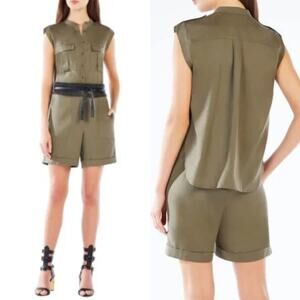 BCBGMaxAzria Olive Button Up Sleeveless Romper Size 8