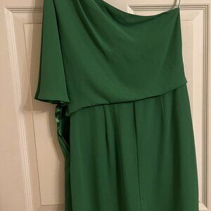 Elegant one shoulder dress. Flowing design with draped detail. Perfect for any occasion.