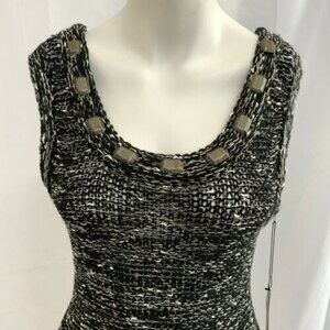 BCBGMaxAzria Open Knit Body-con Sweater Dress Cocktail Beaded Black M