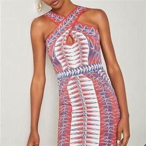 BCBGMaxAzria Padma Knit Crossover Halter Bandage Mini Dress Size Medium