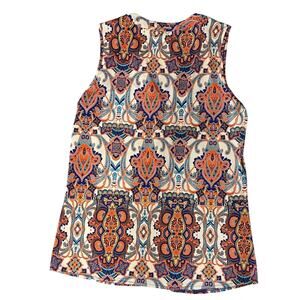 BCBGMaxAzria Paisley Sleeveless Button Front Top Large