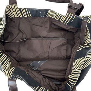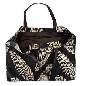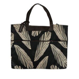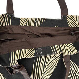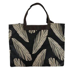 BCBGMaxAzria Black & Beige Canvas Palm Leaf Print Flat Beach Tote Purse