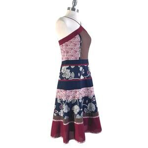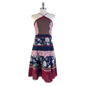 BCBGMaxAzria Patchwork Floral Halter Midi Dress Red
