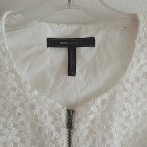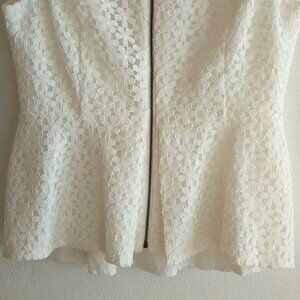 Like New, never worn. BCBG MAX AZARIA size small. Peplum zip daisy vest.