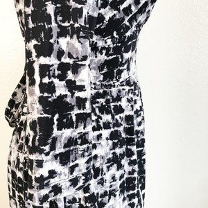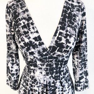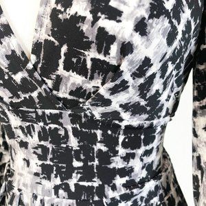 BCBGMaxAzria Petite Black White Gray Brush Stroke Surplice Faux Wrap Dress