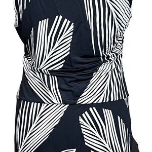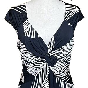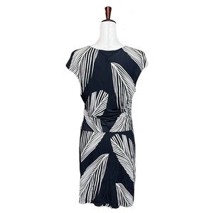 BCBGMaxAzria Petite Twist Front Tropical Rayon Dress. Black Tan Size LP #1181