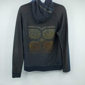 BCBGMaxAzria Rhinestone Logo Zip Up Hooded Sweater Large
