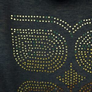 • Condition: Pre-Loved. Shows missing rhinestones throughout both logos.