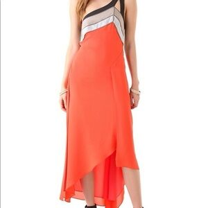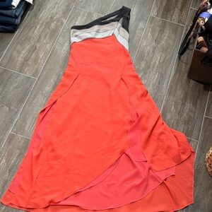 BCBGMaxAzria RunWay One-Shoulder Orange and Black Dress