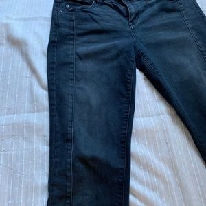 BCBG Max Azria skinnies in a gorgeous faded black. Cute seam down the front adds character to these beauties. Low to mid rise. Slightly stretchy