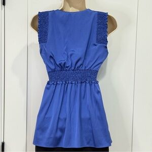 BCBGMaxAzria Silk Babydoll Tank Top Satin Blue Smocked XS Y2K Vintage Party Chic