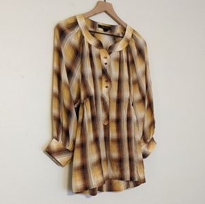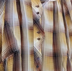 BCBGMaxAzria Silk Boho Plaid Drapey Cinch Blouse size Medium