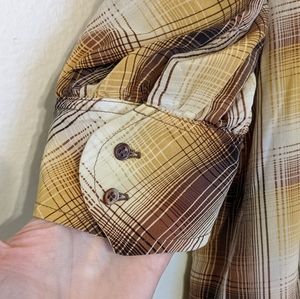 Brown, golden yellow and white plaid-like vintage looking stripes