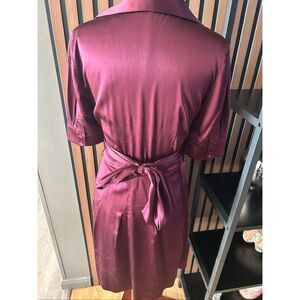 BCBGMaxAzria Silk Dress A-Line Burgundy Merlot Size 2 Wrap Tie Waist Bow Lined