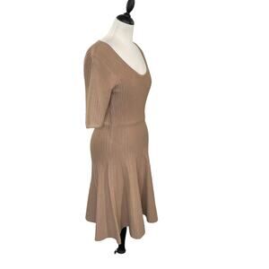 BCBGMaxAzria Size M Allie Sweater Dress Ribbed Knit Fit Flare Camel Half Sleeve