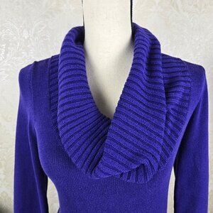 BCBGMaxAzria Size Small Blue Purple Sweater Dress Cowl/Turtleneck Long Sleeves