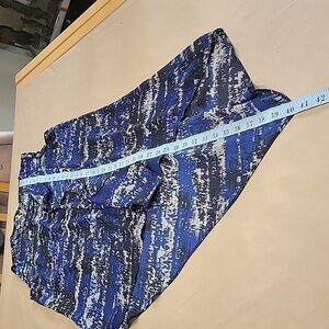 Orient BlueBCBGMaxAzria Size XS Orient Blue "Edythe" Blouse, Gently Used Condition. No Holes, Rips, Stains or Snags. Only flaw is branding tag is only tacked down on 1 side. Asymmetrical Hem. Sleeveless with Sewn Wrapover at Front. Blue, Gray and Black Pattern. Please refer to measurements in photos to ensure proper fit.