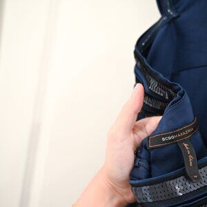 BCBGMaxAzria Size XS Strappy Sequin Open Back Formal Evening Dress