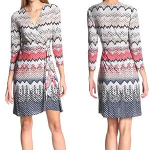 BCBGMaxAzria Size XXS Adele Diamond Patterned Wrap Mini Dress 3/4 Sleeves Flowy