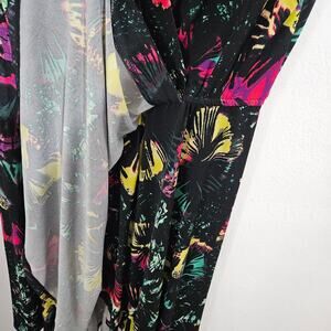 BCBGMaxAzria Sleeveless V-Neck Stretch Colorful Floral Faux Wrap Dress Sz Medium