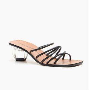 BCBGMaxAzria Slide Sandal Size 8 Astrid Tan Leather Strappy Clear Sculpted Heel