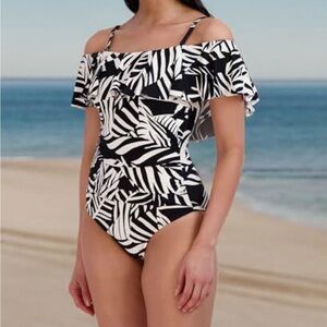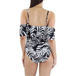 BCBGMaxAzria Small Off the Shoulder One Piece Black and White Print Swimsuit