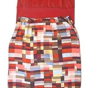 BCBGMaxAzria Straight Silk Long Skirt Below Knee Geometric Patchwork Ruffle Hem