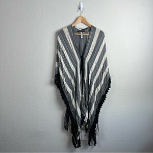 Keywords: BCBG beach coverup, BCBGMaxAzria swim, boho fringe kimono, striped swimsuit cover up, resort wear, poolside outfit, tassel kimono, one size fits most, vacation coverup, lightweight summer layer