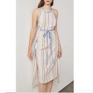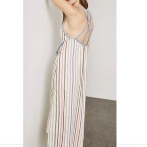 Keywords vertical stripes sleek pretty stylish minimalist modern pretty balletcore neutrals summer Hamptons vibes soft girl aesthetic date backless wedding guest bridesmaid rehearsal dinner clam bake spring refresh neutral pastel utility dress vibe white lotus vibes travel