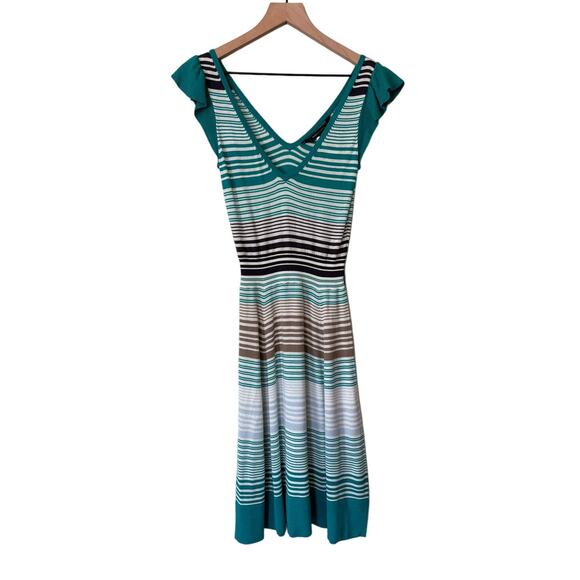 BCBGMaxAzria Striped Silk Blend Knit Dress Small Flutter Sleeve