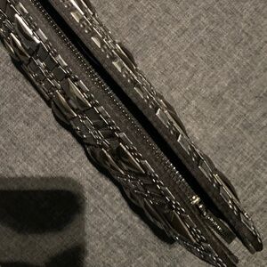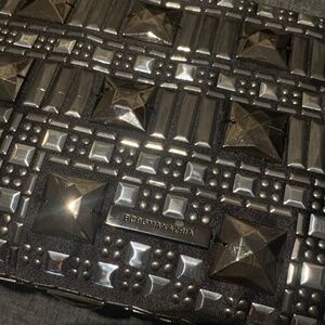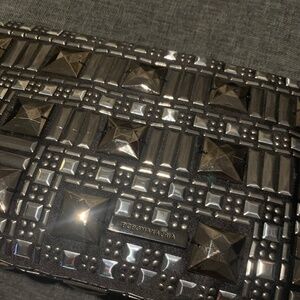 Metallic studded clutch by BCBGMaxAzria. Zipper closure. Interior has a zipper pocket. Pre-owned in good condition, studs show some wear but clean inside.