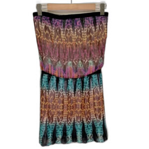 BCBGMaxAzria Taja Pleated Multicolored Batik Print Strapless Mini Dress Size S
