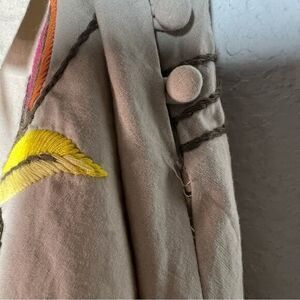 BCBGMaxAzria Tan Floral Button Tie Waist A-Line Skirt Womens Size Medium