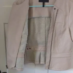 BCBGMaxAzria Tan Leather Jacket Asymmetrical Zipper